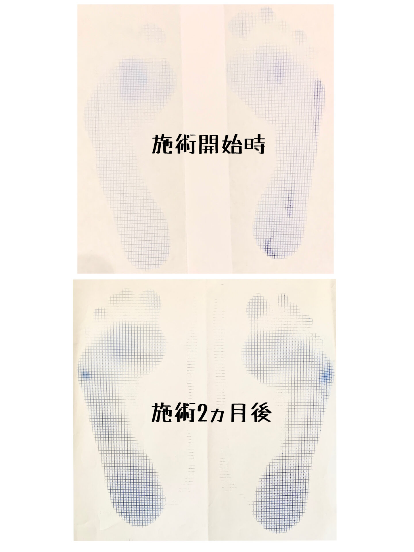 感覚だけに頼った施術は行いません。当院では「足型分析(フットプリント)」と「姿勢分析」を掛け合わせ、痛みの本当の原因を徹底分析します。画像のように、浮いていた指が2ヶ月でしっかり地面を捉えるようになる「歩行再生」を科学的にサポート。なぜ痛むのか、どう変わるのかを数値と画像で提示し、納得のいく改善へと導きます。
